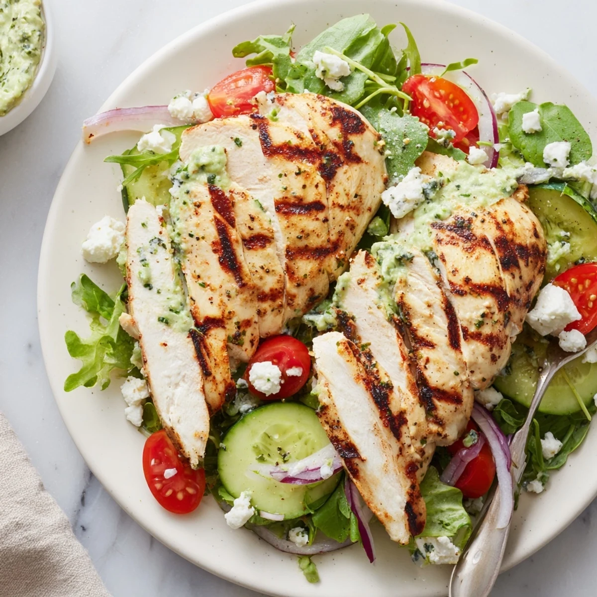 When my best friend came by unexpectedly in late spring, I whipped up this salad while we caught up in the kitchen—the chicken grilling, us laughing, and her stealing cucumber slices right off the board. The meal felt effortless, but the flavors hung in the air even after we moved on to coffee and stories.