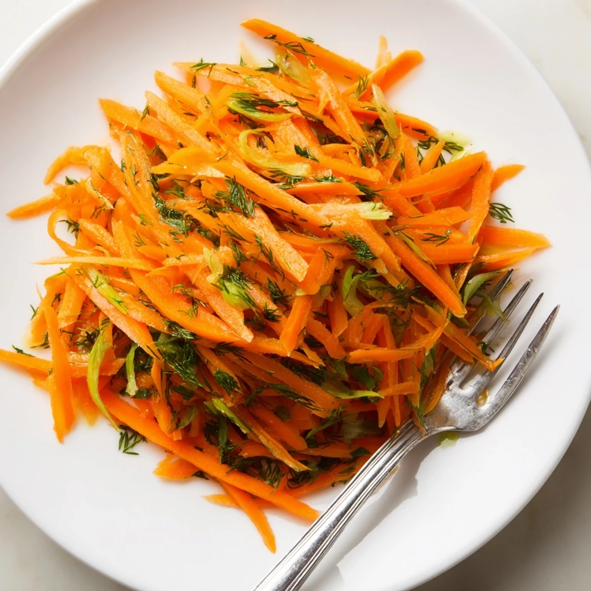 This vibrant carrot salad features crisp vegetables marinated in a bright, zesty dressing of fresh lemon juice, olive oil, and fragrant dill. The marinade infuses the carrots with incredible flavor while maintaining their satisfying crunch. After just an hour of refrigeration, you'll have a refreshing side dish that pairs beautifully with grilled proteins or stands alone as a light lunch. The combination of tangy lemon, aromatic dill, and subtle sweetness from honey creates perfectly balanced flavors that taste even better the next day.