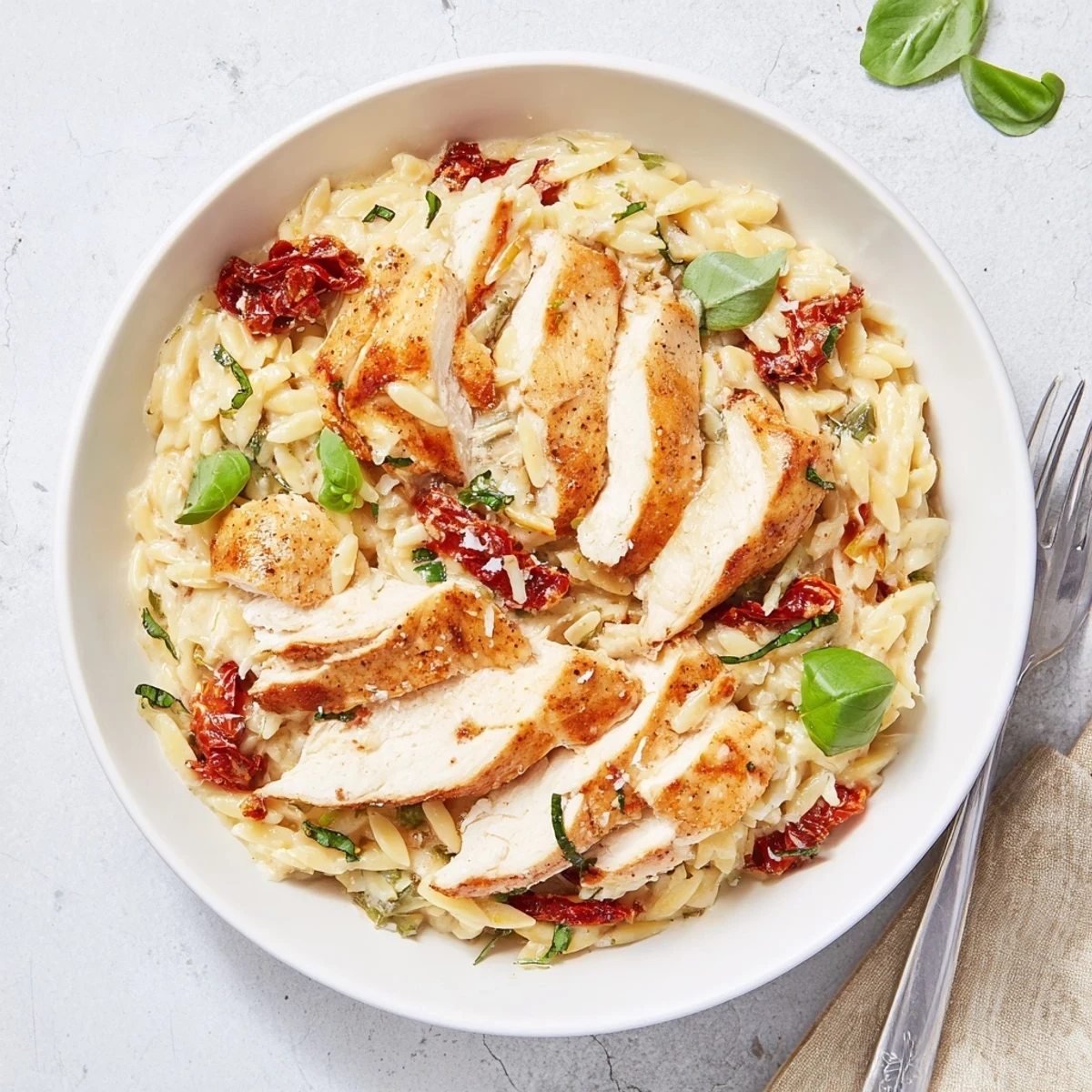 This dish combines golden-seared chicken with tender orzo pasta in a rich, creamy sauce. Sun-dried tomatoes provide tangy depth while garlic, thyme, and fresh basil add aromatic layers. The one-skillet method lets flavors meld beautifully as the orzo absorbs the savory broth and cream mixture. Ready in under an hour, it delivers restaurant-quality elegance with simple preparation.