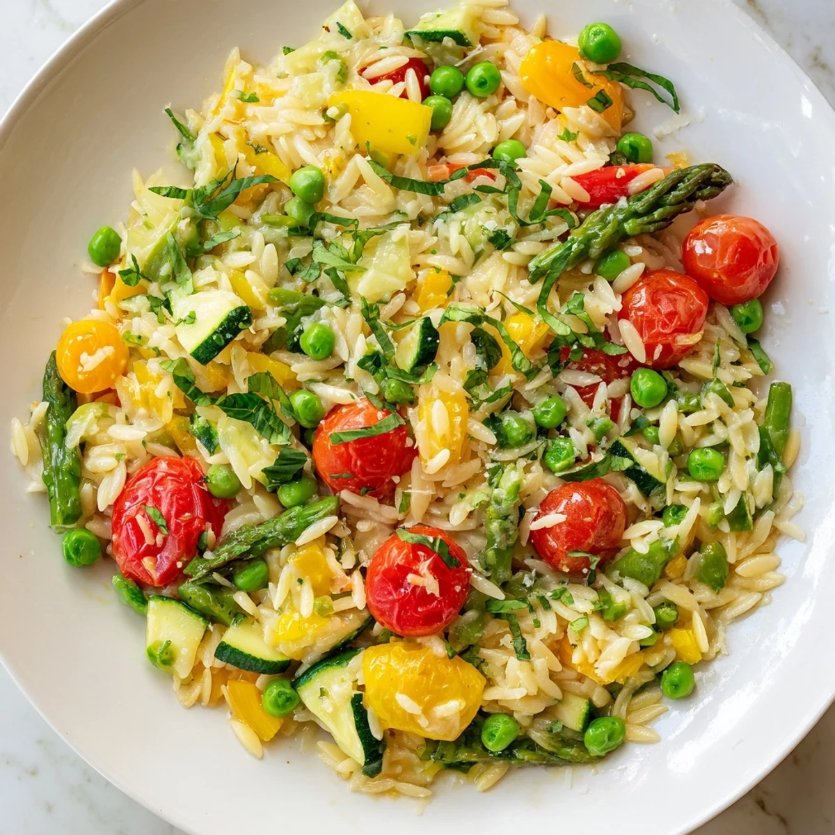 While best enjoyed fresh, you can prepare the vegetables and sauce components ahead. Cook the orzo just before serving, as it absorbs liquid quickly. If reheating, add a splash of water or olive oil to restore creaminess.