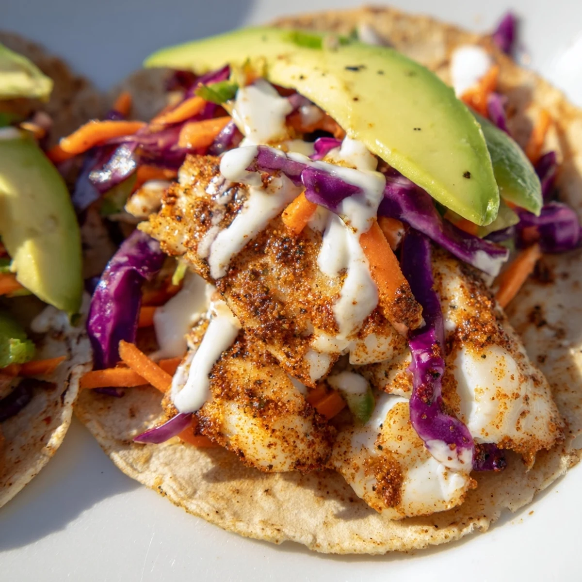 These vibrant tilapia fish tacos combine seasoned, pan-fried fillets with a crisp cabbage-carrot slaw and cool lime crema. The fish gets a smoky spice rub of chili powder, cumin, and paprika, then cooks until golden and flaky. Pile everything into warm tortillas with creamy avocado and fresh cilantro for a satisfying meal that comes together in just over half an hour.